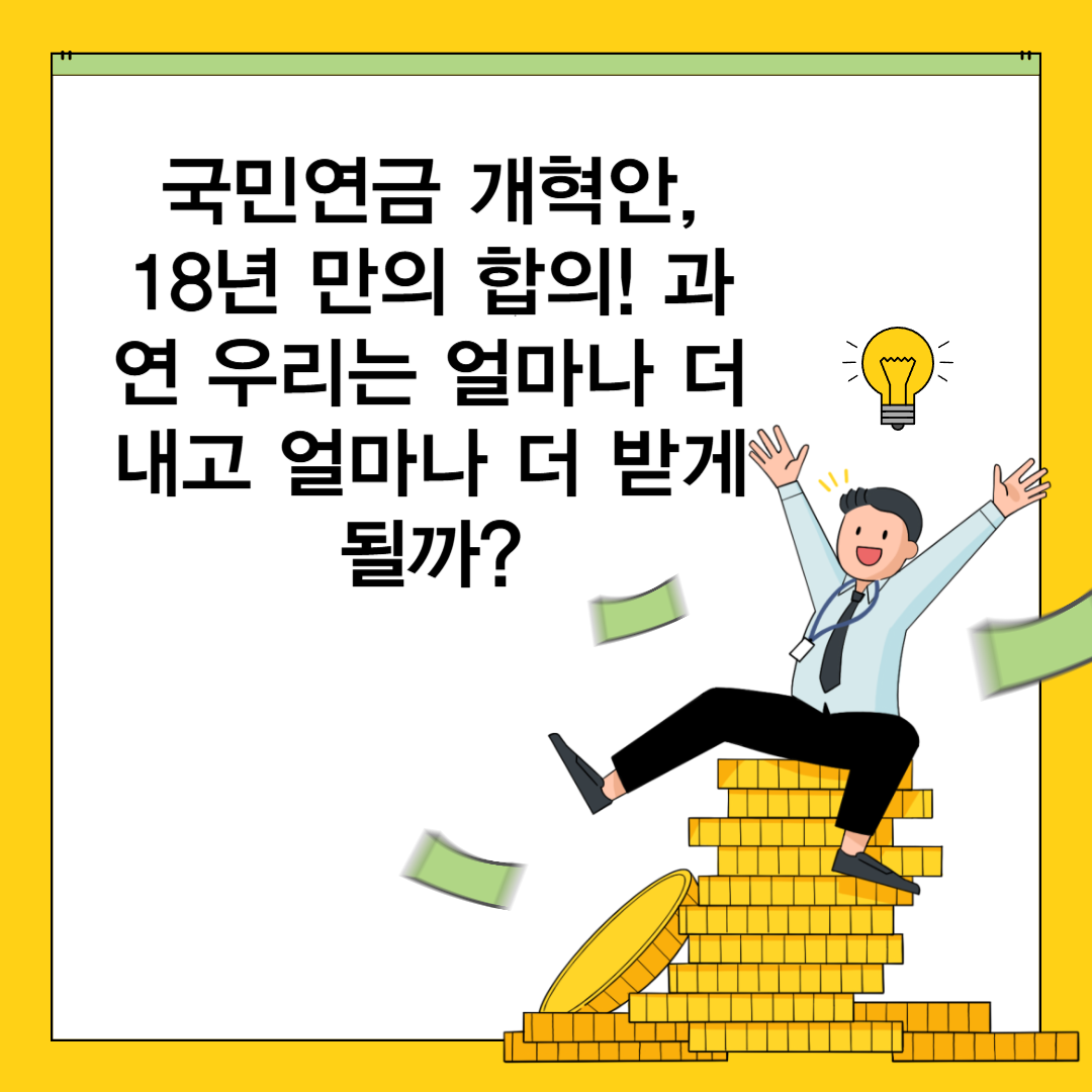 솔직히 이렇게 빨리 국민연금 개혁안이 나올 줄은 상상도 못 했어요. 뭔가 어른들의 복잡한 사정이 있었을 것 같지만, 좋은 방향으로 흘러가고 있다는 느낌적인 느낌! 😉 18년 만에 여야 합의로 연금개혁이 완료되었다니, 이건 진짜 뉴스감 아니겠어요? 🎉 18년 동안 그 수많은 시도들이 물거품이 되었는데, 드디어 해냈다는 게 감격스럽기까지 합니다.