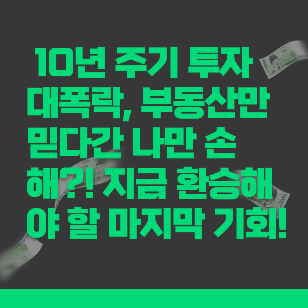 지금은 부동산에서 대체 투자로 '환승'해야 할 마지막 골든 타임일지도 모릅니다. 부동산 시장의 불확실성이 커지고, 주식 시장의 성장 가능성이 높아지는 지금, 과감한 결단이 필요합니다.