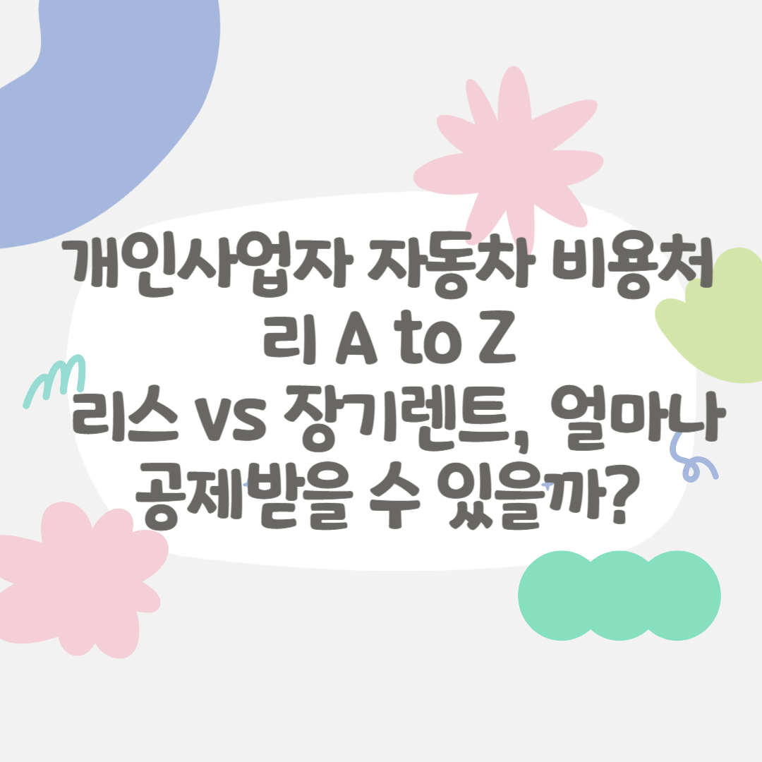 이번 포스팅에서는 개인사업자 자동차 비용처리에 대한 모든 것을 다뤄봤습니다. 리스 vs 장기렌트, 비용처리 한도, 개인 명의 차량의 비용처리 가능 여부, 그리고 절세 팁까지! 꼼꼼하게 준비해서 세금 걱정 없이 사업에만 집중하시길 바랍니다.