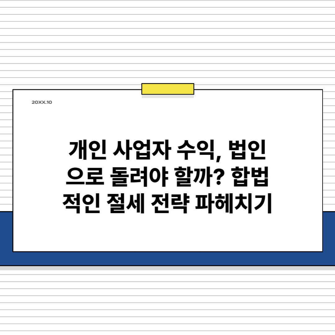 사업을 하다 보면 이런 고민 한 번쯤 해보셨을 거예요. "개인 사업으로 벌어들이는 수익, 굳이 법인을 만들어서 관리해야 할까? 세금 때문에 복잡해지는 건 아닐까?" 특히 사업 규모가 커지면서 세금 부담이 늘어날 때, 법인 전환이라는 선택지를 두고 깊이 고민하게 되죠.