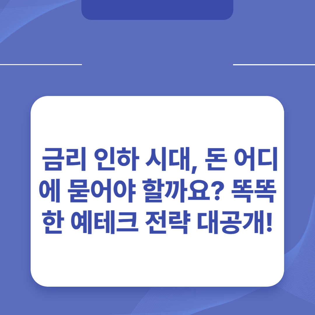 저도 얼마 전에 만기된 예금을 굴릴 곳을 찾다가 깊은 고민에 빠졌는데요. 예전처럼 은행에 턱하니 넣어두면 알아서 불어나는 시대는 이제 끝난 걸까요? 🤔 그래서 오늘은 저처럼 고민 많은 여러분들을 위해, 금리 인하 시대에 살아남는 똑똑한 예테크 전략을 샅샅이 파헤쳐 보려고 합니다. 함께 꼼꼼하게 살펴보고, 우리 모두 슬기로운 재테크 꿀팁 얻어가자구요! ✨